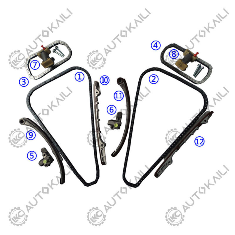 हमारी मरम्मत किट में टाइमिंग चेन, कैमशाफ्ट फेजर (वीवीटी), कैमशाफ्ट रील, क्रैंकशाफ्ट रील, टाइमिंग गाइड रेल, टेंशनर और अन्य टाइमिंग पार्ट्स शामिल हैं। इन्हें निम्न में वर्गीकृत किया गया हैः