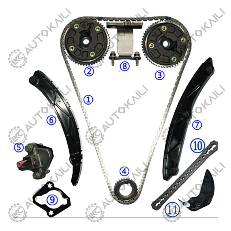 हमारी मरम्मत किट में टाइमिंग चेन, कैमशाफ्ट फेजर (वीवीटी), कैमशाफ्ट रील, क्रैंकशाफ्ट रील, टाइमिंग गाइड रेल, टेंशनर और अन्य टाइमिंग पार्ट्स शामिल हैं। इन्हें निम्न में वर्गीकृत किया गया हैः